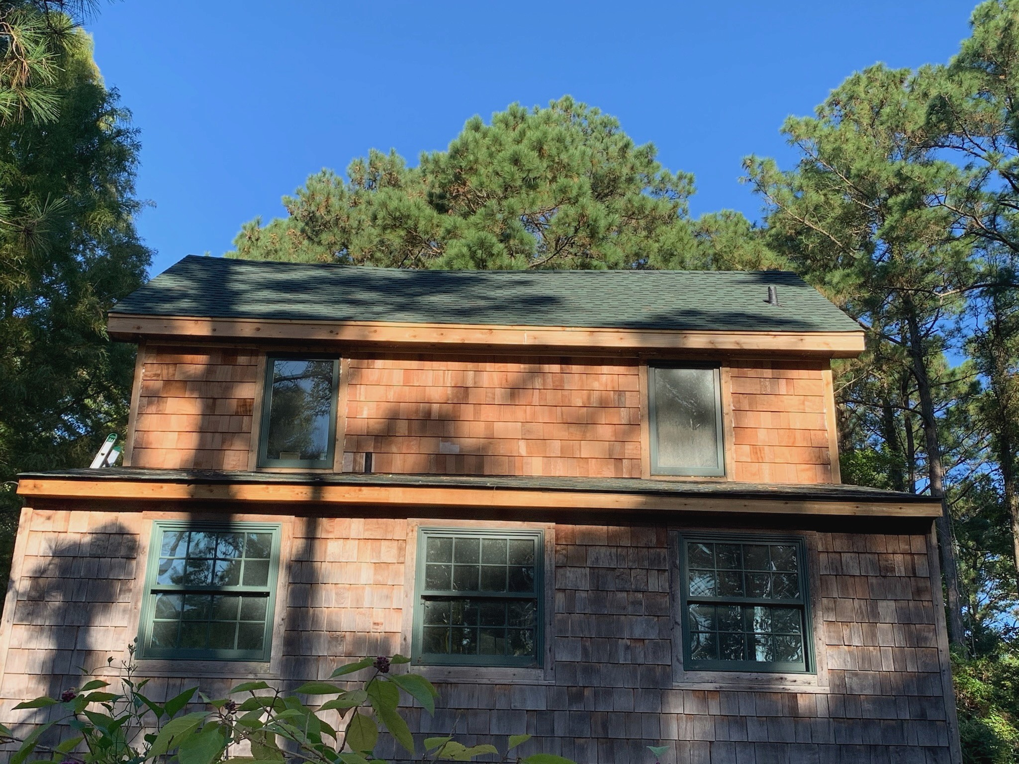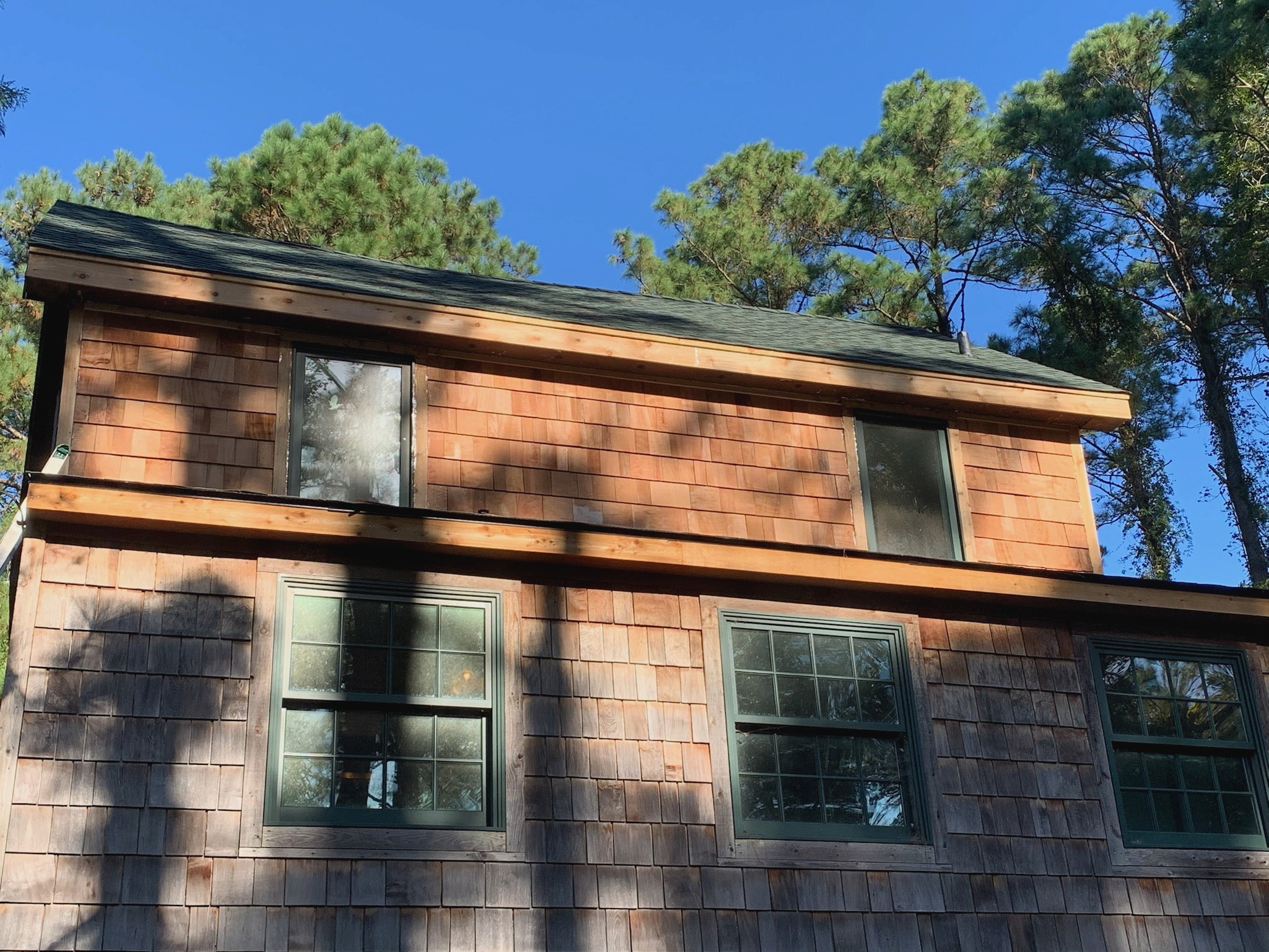 Outer Banks cedar siding replacement | Complete exterior renovation with new cedar shingles, trim restoration, and upgraded durability. This project transformed a weathered home into a refreshed coastal retreat, improving protection, efficiency, and curb appeal with beautiful, natural cedar siding built to last.